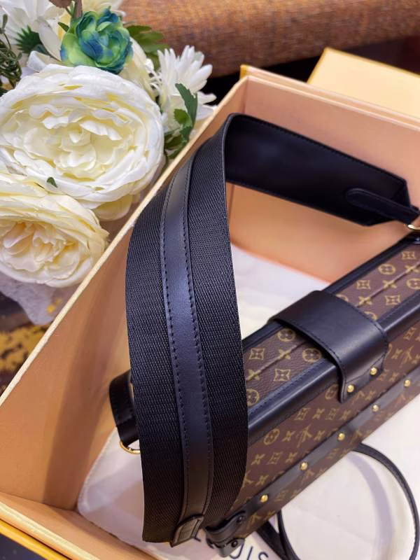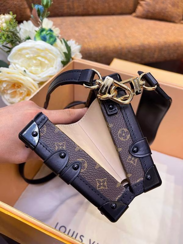 Nicolas Ghesquière reimagines the classic Petite Malle handbag with a horizontal extension, creating this Petite Malle East West style to celebrate the 200th birth anniversary of Mr. Louis Vuitton. Crafted from Monogram canvas with leather trim, it can be carried by hand to recreate the 2022 Spring-Summer runway look or worn over the shoulder using the detachable strap.